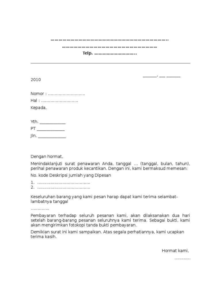 1 Contoh Surat Pemesanan Barang from imgv2-1-f.scribdassets.com Dengan surat penawaran ini, memudahkan mereka untuk mempromosikan produk mereka. Contoh surat penawaran kerjasama event organizer (eo). Dalam ulasan kali ini bukan membahas tentang review. Produsen dan distributor peralatan rumah tangga. Contoh surat penawaran produk kecantikan dengan format professional sebagai referensi yang baik dalam membuat surat penawaran produk secara resmi. Catering sehati alamat kompleks bpd jatiwuru no. Pada dasarnya surat balasan penawaran merupakan sebuah surat yang dibuat untuk menginformasikan bahwa perusahaan yang bersangkutan telah setuju untuk menerima tawaran produk dari perusahaan yang sebelumnya telah menawarkan produk mereka. Selain sekolah, instansi pemerintah juga.